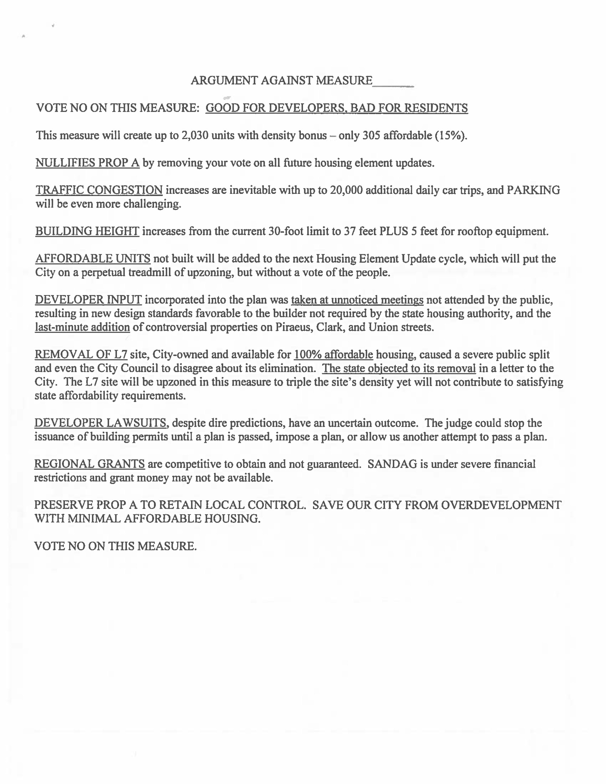 ▪ They claim “affordable units not built will be added to the next housing element cycle WITHOUT A VOTE OF THE PEOPLE” – False. Any affordable units not built will be added to the next cycle but ONLY BECAUSE THEY WERE ALREADY voted on and APPROVED by a vote of the people – Measure U. . .